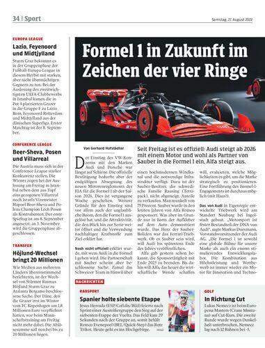 Seit Freitag ist es offiziell: Audi steigt ab 2026 mit einem Motor und wohl als Partner von Sauber in die Formel 1 ein, Alfa steigt aus.