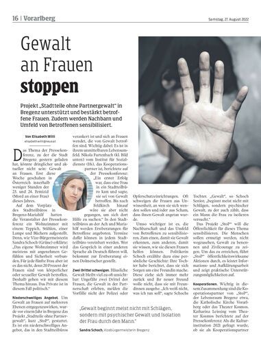 Projekt „Stadtteile ohne Partnergewalt“ in Bregenz unterstützt und bestärkt betroffene Frauen. Zudem werden Nachbarn und Umfeld von Betroffenen sensibilisiert.