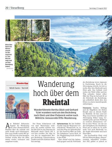 Wanderführerin Hertha Glück und Gerhard Vylet wandern rund um den Bocksberg nach Ebnit und über Fluhereck weiter nach Millrütte. Genussvolle Öffis-Wanderung.