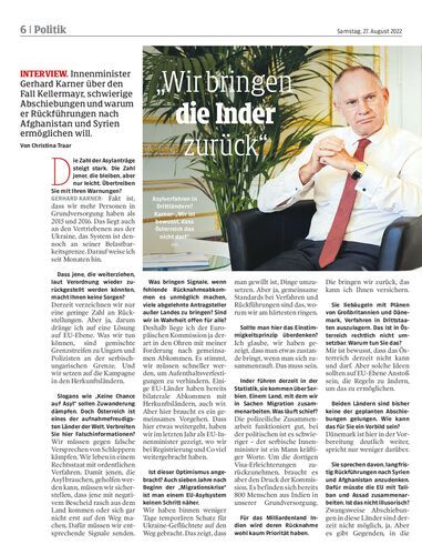 Innenminister Gerhard Karner über den Fall Kellermayr, schwierige Abschiebungen und warum er Rückführungen nach Afghanistan und Syrien ermöglichen will. Von Christina Traar