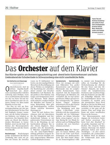 Das Klavier spielte am Donnerstagnachmittag und -abend beim Kammerkonzert und beim Liederabend der Schubertiade in Schwarzenberg eine nicht unerhebliche Rolle.