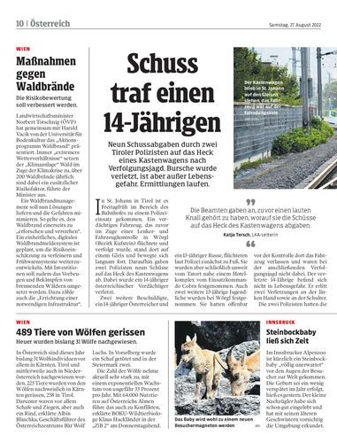 Neun Schussabgaben durch zwei Tiroler Polizisten auf das Heck eines Kastenwagens nach Verfolgungsjagd. Bursche wurde verletzt, ist aber außer Lebensgefahr. Ermittlungen laufen.