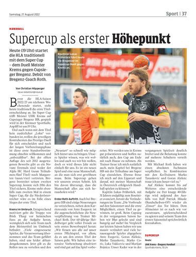 Heute (19 Uhr) startet die HLA traditionell mit dem Super Cup – dem Duell Meister Krems gegen Cupsieger Bregenz. Debüt von Bregenz-Coach Roth.