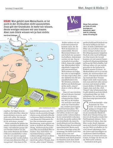 ESSAY. Mut gehört zum Menschsein, er ist auch in der Zivilisation nicht auszurotten. Zwar gilt der Grundsatz: Je mehr wir wissen, desto weniger müssen wir uns trauen. Aber zum Glück wissen wir ja fast nichts. Von Ernst Sittinger