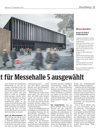 Der Neubau der Halle 5 im Dornbirner Messequartier erfolgt in Regie des Bregenzer Architekturbüros Bechter Zaffignani Architekten ZT GmbH. Diese Entscheidung fällte eine achtköpfige Experten-Jury.