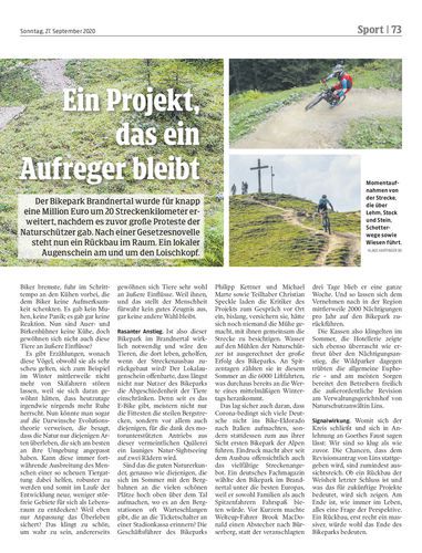 Bikepark. Vor wenigen Tagen wurde der Ausbau des Bikeparks Brandnertal abgeschlossen. Doch den Betreibern droht ein Rückbau, da Naturschutzanwältin Katharina Lins eine Gesetzesnovelle für eine Revision nützte. Seiten 72/73 Hartinger