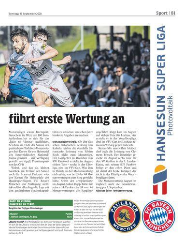 Hohenems-Schlussmann Andre Breitfuss führt souverän die erste Gesamtwertung bei den Torhütern an und hat somit auch die Monatswertung August gewonnen.