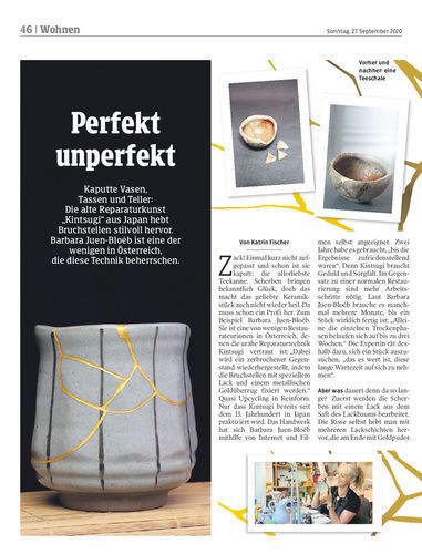 Kaputte Vasen, Tassen und Teller: Die alte Reparaturkunst „Kintsugi“ aus Japan hebt Bruchstellen stilvoll hervor. Barbara Juen-Bloéb ist eine der wenigen in Österreich, die diese Technik beherrschen.