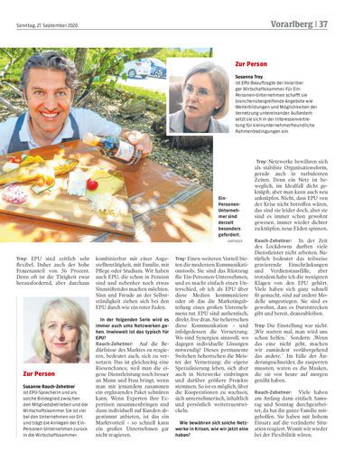 Interview. Ein-Personen-Unternehmen in der Corona-Zeit – eine Herausforderung. Im Interview geben EPU-Sprecherin Susanne Rauch-Zehetner und Susanna Troy, EPU-Beauftragte der WKV, einen Einblick.