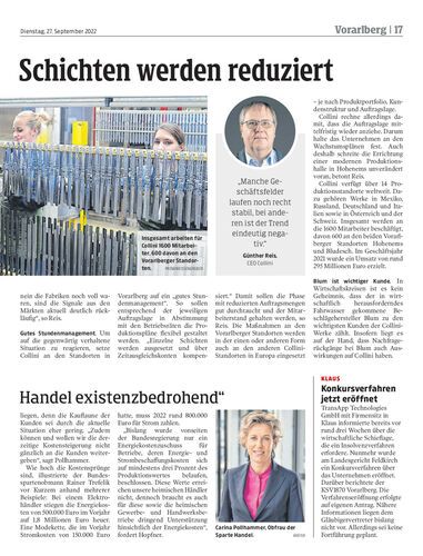 Oberflächenveredler Collini reagiert mit flexiblen Produktionsplänen, Zeitausgleichskonten und Aussetzen einzelner Schichten. An Ausbauplänen in Hohenems wird festgehalten.