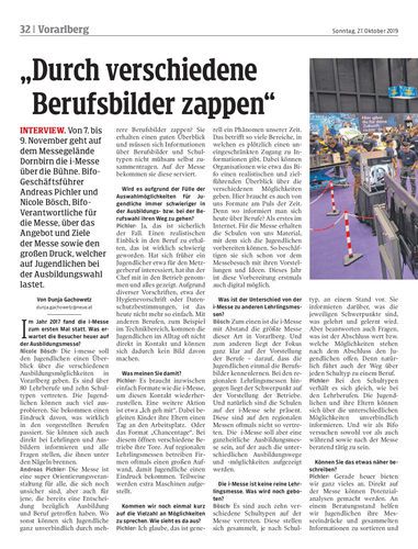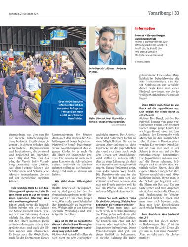 Interview. Von 7. bis 9. November geht auf dem Messegelände Dornbirn die i-Messe über die Bühne. Bifo-Geschäftsführer Andreas Pichler und Nicole Bösch, Bifo-Verantwortliche für die Messe, über das Angebot und Ziele der Messe sowie den großen Druck, welcher auf Jugendlichen bei der Ausbildungswahl lastet.