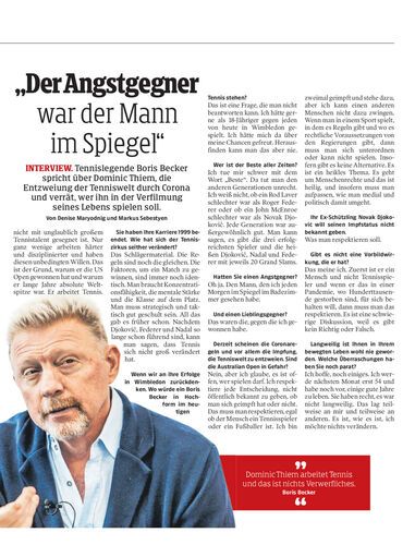 Tennislegende Boris Becker spricht über Dominic Thiem, die Entzweiung der Tenniswelt durch Corona und verrät, wer ihn in der Verfilmung seines Lebens spielen soll. Von Denise Maryodnig und Markus Sebestyen
