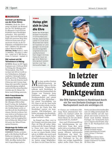 Die ÖFB-Damen holten in Nordirland durch ein Tor von Stefanie Enzinger in der Nachspielzeit noch ein wichtiges 2:2.