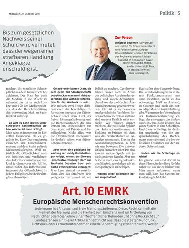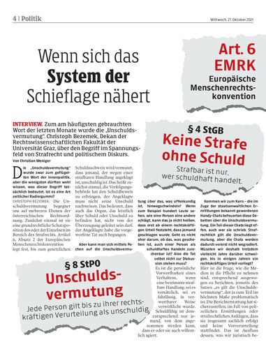 Zum am häufigsten gebrauchten Wort der letzten Monate wurde die „Unschulds- vermutung“. Christoph Bezemek, Dekan der Rechtswissenschaftlichen Fakultät der Universität Graz, über den Begriff im Spannungsfeld von Strafrecht und politischem Diskurs. Von Christian Weniger