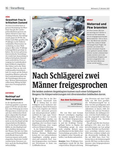Die beiden anderen Angeklagten kamen nach einer Schlägerei in Bregenz für Körperverletzungen mit diversionellen Geldbußen davon.