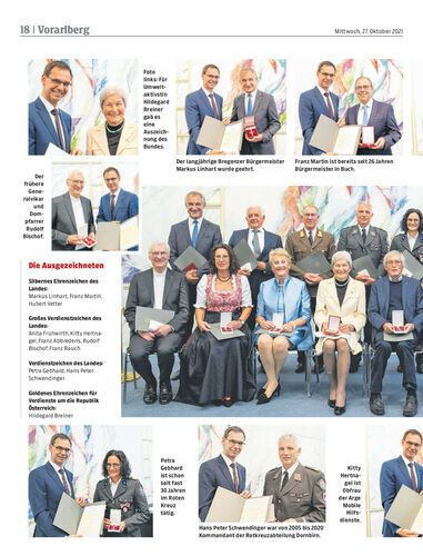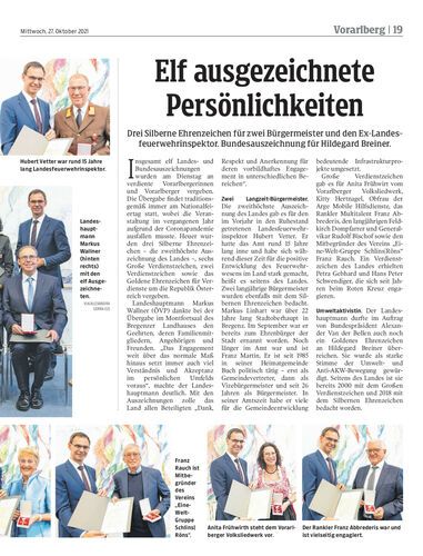 Drei Silberne Ehrenzeichen für zwei Bürgermeister und den Ex-Landesfeuerwehrinspektor. Bundesauszeichnung für Hildegard Breiner.