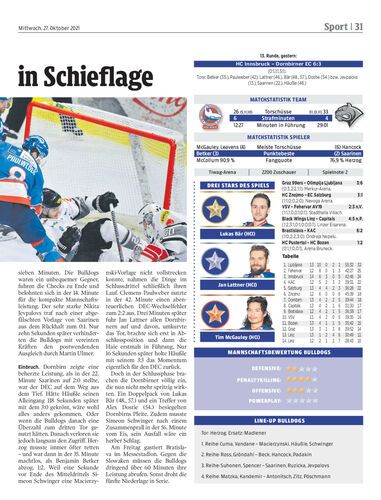 Spielbericht. Dornbirn verliert nach einer 2:0-Führung in Innsbruck noch mit 3:6. Weil der DEC im Schlussdrittel mit 1:5 untergeht.
