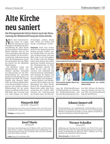 Die Pfarrgemeinde Götzis feierte nach der Renovierung die Wiedereröffnung der Alten Kirche.