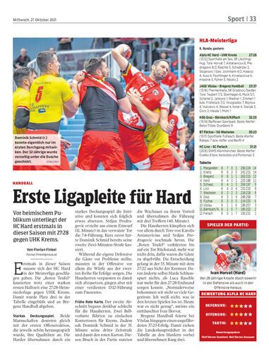 Vor heimischem Publikum unterliegt der HC Hard erstmals in dieser Saison mit 27:28 gegen UHK Krems.