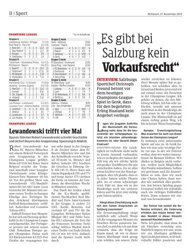 Salzburgs Sportchef Christoph Freund betont vor dem heutigen Champions-League-Spiel in Genk, dass für den begehrten Erling Haaland kein Angebot vorliege.