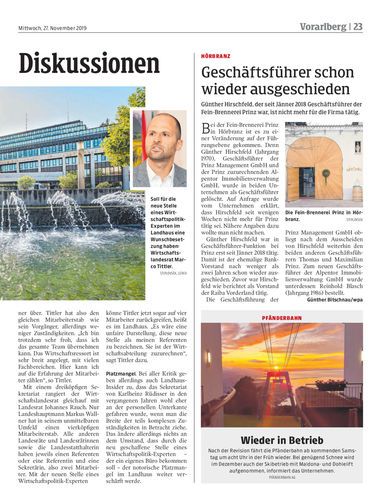 Günther Hirschfeld, der seit Jänner 2018 Geschäftsführer der Fein-Brennerei Prinz war, ist nicht mehr für die Firma tätig.