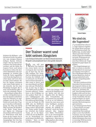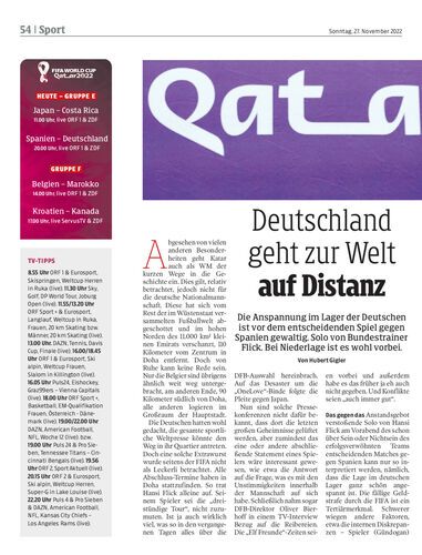 Die Anspannung im Lager der Deutschen ist vor dem entscheidenden Spiel gegen Spanien gewaltig. Solo von Bundestrainer Flick. Bei Niederlage ist es wohl vorbei. Von Hubert Gigler