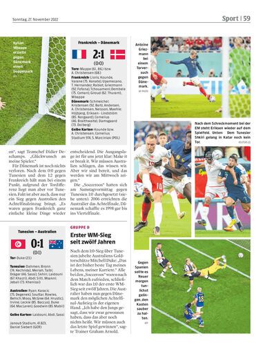 Kylian Mbappe traf für Frankreich beim 2:1-Sieg gegen Dänemark doppelt und hat den amtierenden Weltmeister somit in die K.-o.-Phase befördert. Und damit auch eine 20-jährige Unserie beendet, die jeweils den Weltmeister betraf.