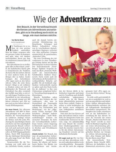 Den Brauch, in der Vorweihnachtszeit die Kerzen am Adventkranz anzuzünden, gibt es in Vorarlberg noch nicht so lange, wie man meinen möchte.
