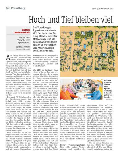 Das Vorarlberger Agrarforum widmete sich der Herausforderung Klimaschutz. Der Meteorologe und Moderator Andreas Jäger sprach über Ursachen und Auswirkungen des Klimawandels.