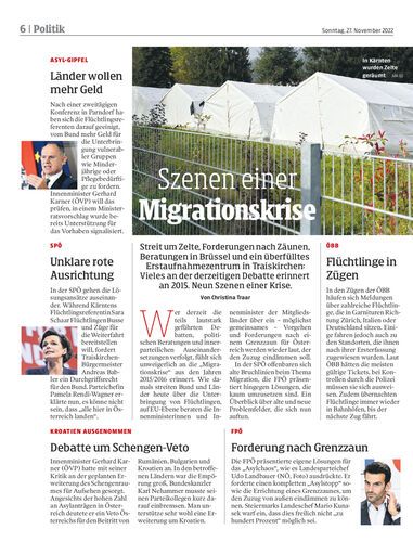 Streit um Zelte, Forderungen nach Zäunen, Beratungen in Brüssel und ein überfülltes Erstaufnahmezentrum in Traiskirchen: Vieles an der derzeitigen Debatte erinnert an 2015. Neun Szenen einer Krise. Von Christina Traar