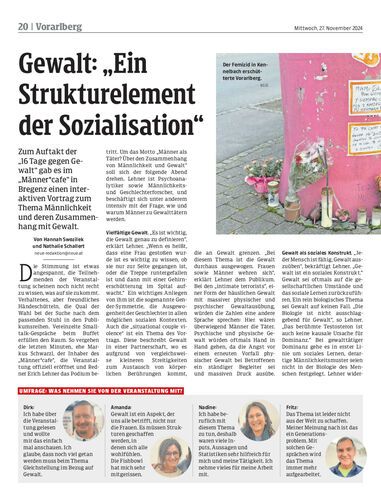 Zum Auftakt der „16 Tage gegen Gewalt“ gab es im „Männer*cafe“ in Bregenz einen interaktiven Vortrag zum Thema Männlichkeit und deren Zusammenhang mit Gewalt.