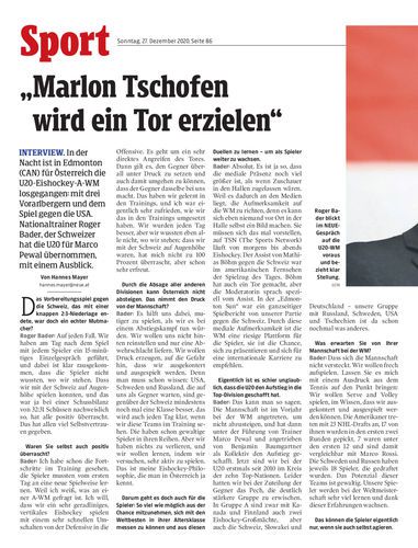 Interview. In der Nacht ist in Edmonton (CAN) für Österreich die U20-Eishockey-A-WM losgegangen: mit drei Vorarlbergern und dem Spiel gegen die USA. Nationaltrainer Roger Bader, der Schweizer hat die U20 für Marco Pewal übernommen, mit einem Ausblick.