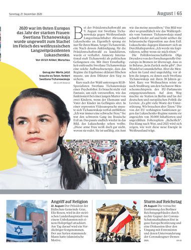2020 war im Osten Europas das Jahr der starken Frauen: Swetlana Tichanowskaja wurde ungewollt zum Stachel im Fleisch des weißrussischen Langzeitpräsidenten Lukaschenko. Von Ulrich Krökel, Warschau