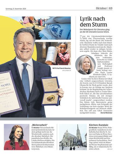 Der Nobelpreis für Literatur ging an die US-Literatin Louise Glück.