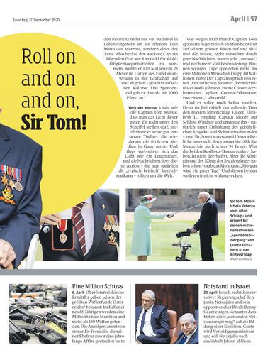 Er ist 100 Jahre alt und rollte mitten im britischen Lockdown schnurstracks in die Herzen der Menschen: Captain Tom Moore, Pardon: Sir Tom Moore sammelte als „Spaziergänger“ 40 Millionen Euro. Von Bernd Melichar