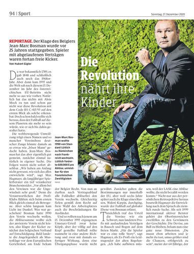 REPORTAGE. Der Klage des Belgiers Jean-Marc Bosman wurde vor 25 Jahren stattgegeben. Spieler mit abgelaufenen Verträgen waren fortan freie Kicker. Von Hubert Gigler