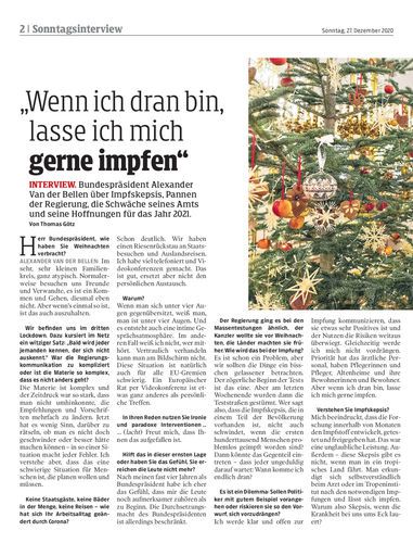 Bundespräsident Alexander Van der Bellen über Impfskepsis, Pannen der Regierung, die Schwäche seines Amts und seine Hoffnungen für das Jahr 2021. Von Thomas Götz