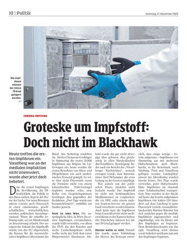Heute treffen die ersten Impfdosen ein. Vorarlberg war an der medialen Impfaktion nicht interessiert, wurde aber jetzt doch beliefert.