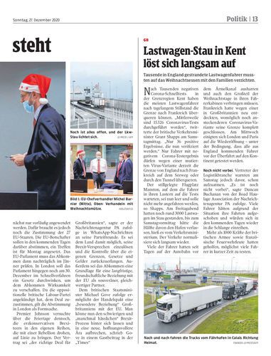 Tausende in England gestrandete Lastwagenfahrer mussten auf das Weihnachtsessen mit den Familien verzichten.