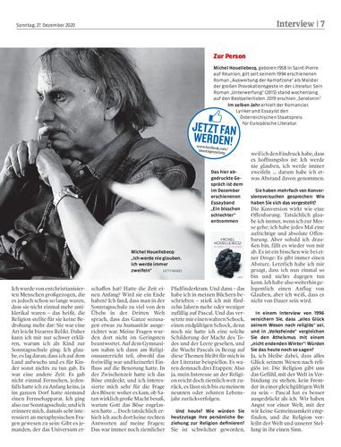 Er hat sich einst als Atheist bezeichnet, später dann als Agnostiker. Hier spricht das Enfant terrible der französischen Literatur, Michel Houellebecq, über Glauben und Nichtglauben und die Kraft der Religion. Von Agathe Novak-Lechevalier