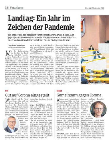 Ein großer Teil der Arbeit im Vorarlberger Landtag war dieses Jahr geprägt von der Corona-Pandemie. Die Klubobleute aller fünf Fraktionen werfen einen Blick zurück auf das zu Ende gehende Jahr.