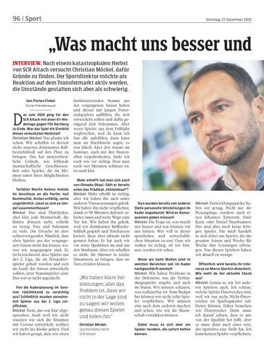 Interview. Nach einem katastrophalen Herbst von SCR Altach versucht Christian Möckel, dafür Gründe zu finden. Der Sportdirektor möchte als Reaktion auf dem Transfermarkt aktiv werden, die Umstände gestalten sich aber als schwierig.
