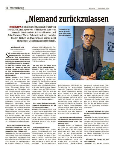 Interview. Sozialeinrichtungen befürchten für 2026 Kürzungen von 15 Millionen Euro – es herrscht Unsicherheit. Caritasdirektor und AGV-Obmann Walter Schmolly erklärt, welche Folgen drohen und warum aus seiner Sicht dringender Gesprächsbedarf besteht.