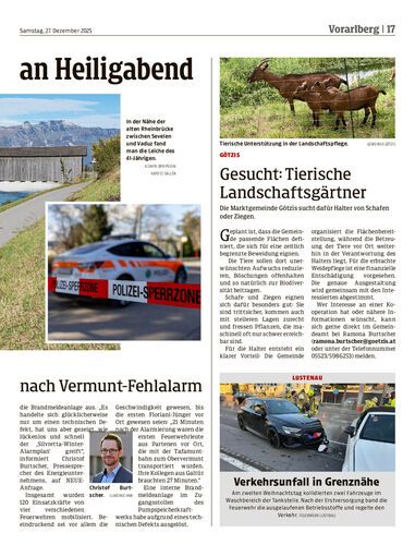 Die Marktgemeinde Götzis sucht dafür Halter von Schafen oder Ziegen.