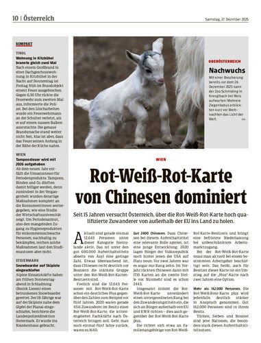 Rot-Weiß-Rot-Karte von Chinesen dominiert