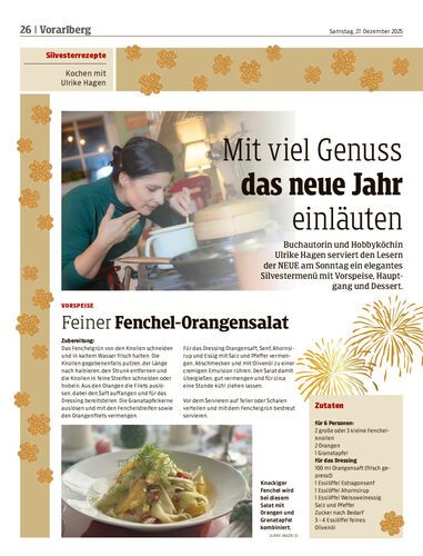 Buchautorin und Hobbyköchin Ulrike Hagen serviert den Lesern der NEUE am Sonntag ein elegantes Silvestermenü mit Vorspeise, Hauptgang und Dessert.
