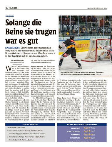 Spielbericht. Die Pioneers geben gegen Salzburg ein 2:0 aus der Hand und müssen sich sichtlich entkräftet zu Hause vor nur 1944 Zuschauern in der Overtime mit 3:4 geschlagen geben.