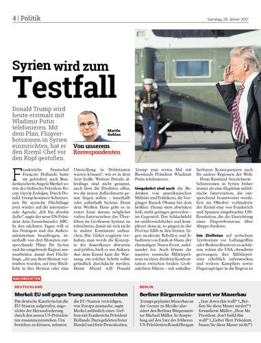 Donald Trump wird heute erstmals mit Wladimir Putin telefonieren. Mit dem Plan, Flugverbotszonen in Syrien einzurichten, hat er den Kreml-Chef vor den Kopf gestoßen.