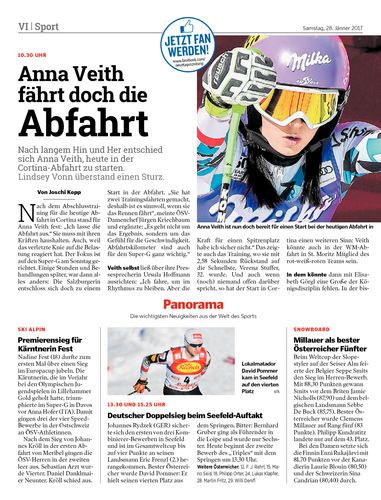 Nach langem Hin und Her entschied sich Anna Veith, heute in der Cortina-Abfahrt zu starten. Dafür fällt Christine Scheyer aus.