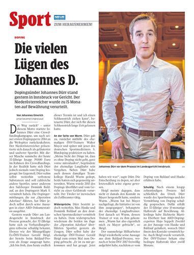Dopingsünder Johannes Dürr stand gestern in Innsbruck vor Gericht. Der Niederösterreicher wurde zu 15 Monaten auf Bewährung verurteilt.